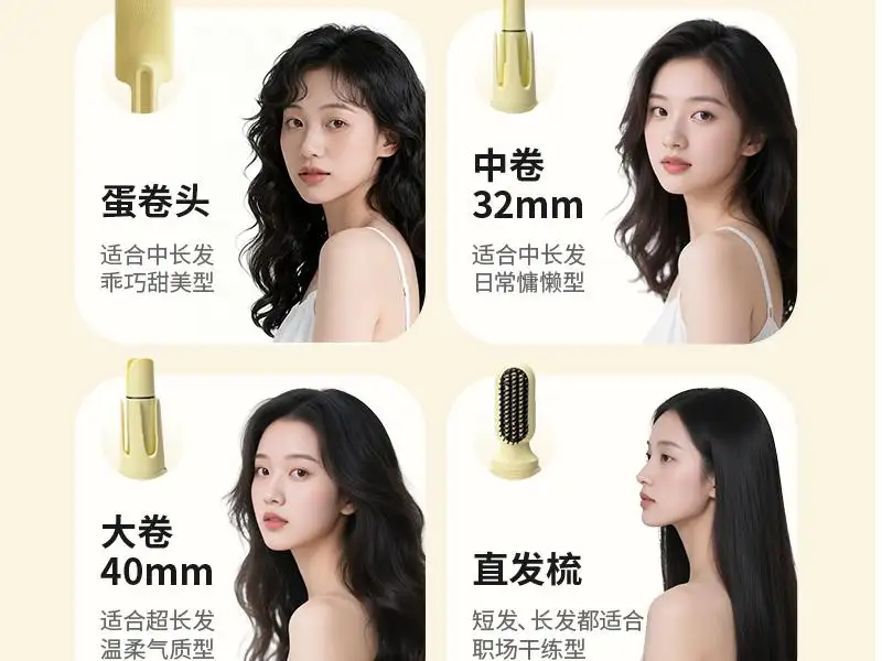1.便携性价比:一机=(32mm+40mm卷筒)+蛋卷头+直发梳四合一,既快又值还便携