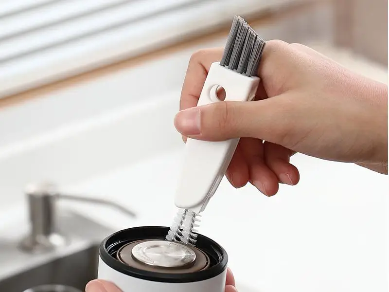 这款三合一多功能保温杯盖清洁刷采用可旋转双头设计,集三大功能于一身:软毛刷日常清洁,硬毛刷对付顽固污渍,尖形刮头剔除缝隙异物,轻松搞定保温杯盖死角,让清洁更彻底。