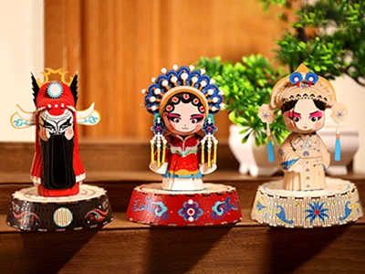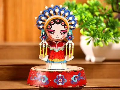 以河北梆子为魂,选取《大登殿》王宝钏、《蝴蝶杯》田玉川、《钟馗》三大经典剧目人物,凝作Q萌纸艺形象。采用环保纸卡材质,通过拼插组合即可解锁立体人物。成品既是桌面吸睛的萌趣摆件,更是可收藏的文化纪念品,兼具功能与趣味性。